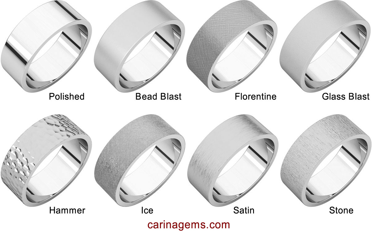 You have the option of a standard polished finish or choose from 7 alternate finishings, with an additional charge.