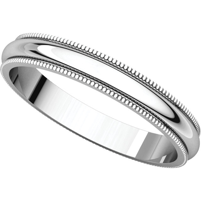 Milgrain Wedding Bands. Flat surface against the finger, domed surface away from the finger, with narrow beaded edges.