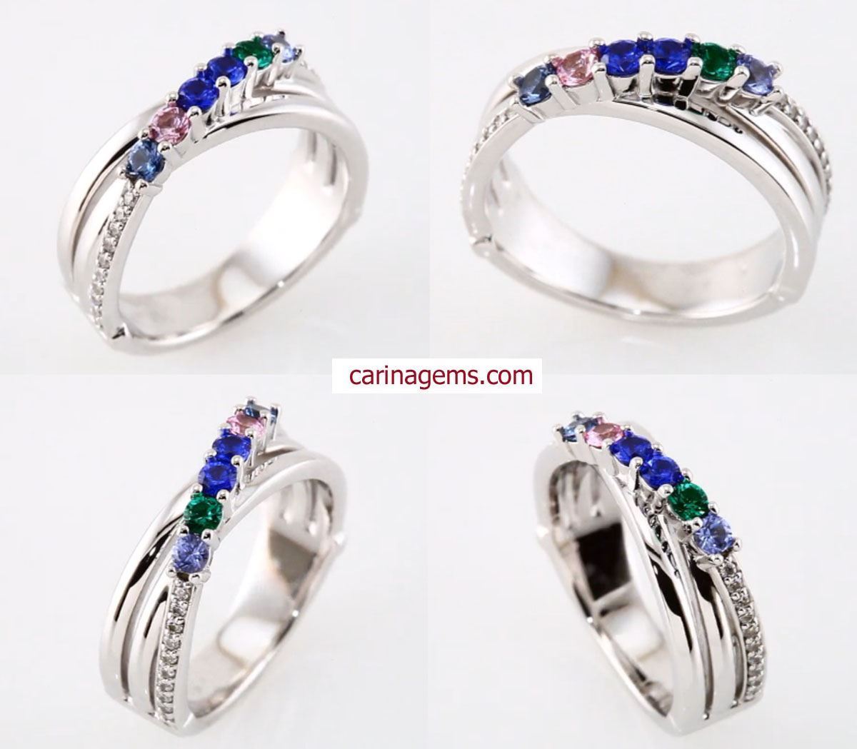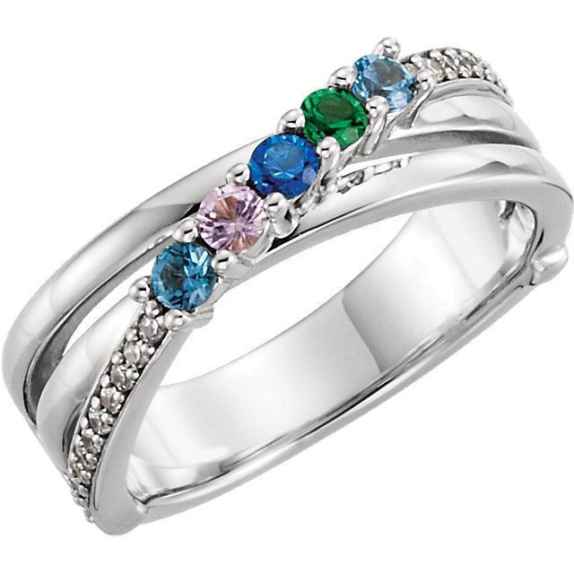 This ring is available in 10K or 14 karat yellow or white gold with simulated or genuine stones. Stones will be set from left to right.