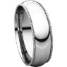 Milgrain Comfort Fit Wedding Band. Rounded surface against the finger, domed surface away from the finger, with narrow beaded edges.