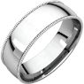 Milgrain Comfort Fit Light Wedding Band. Rounded surface against the finger, domed surface away from the finger, with narrow beaded edges, averages 84% as thick as Milgrain Comfort Fit.