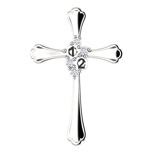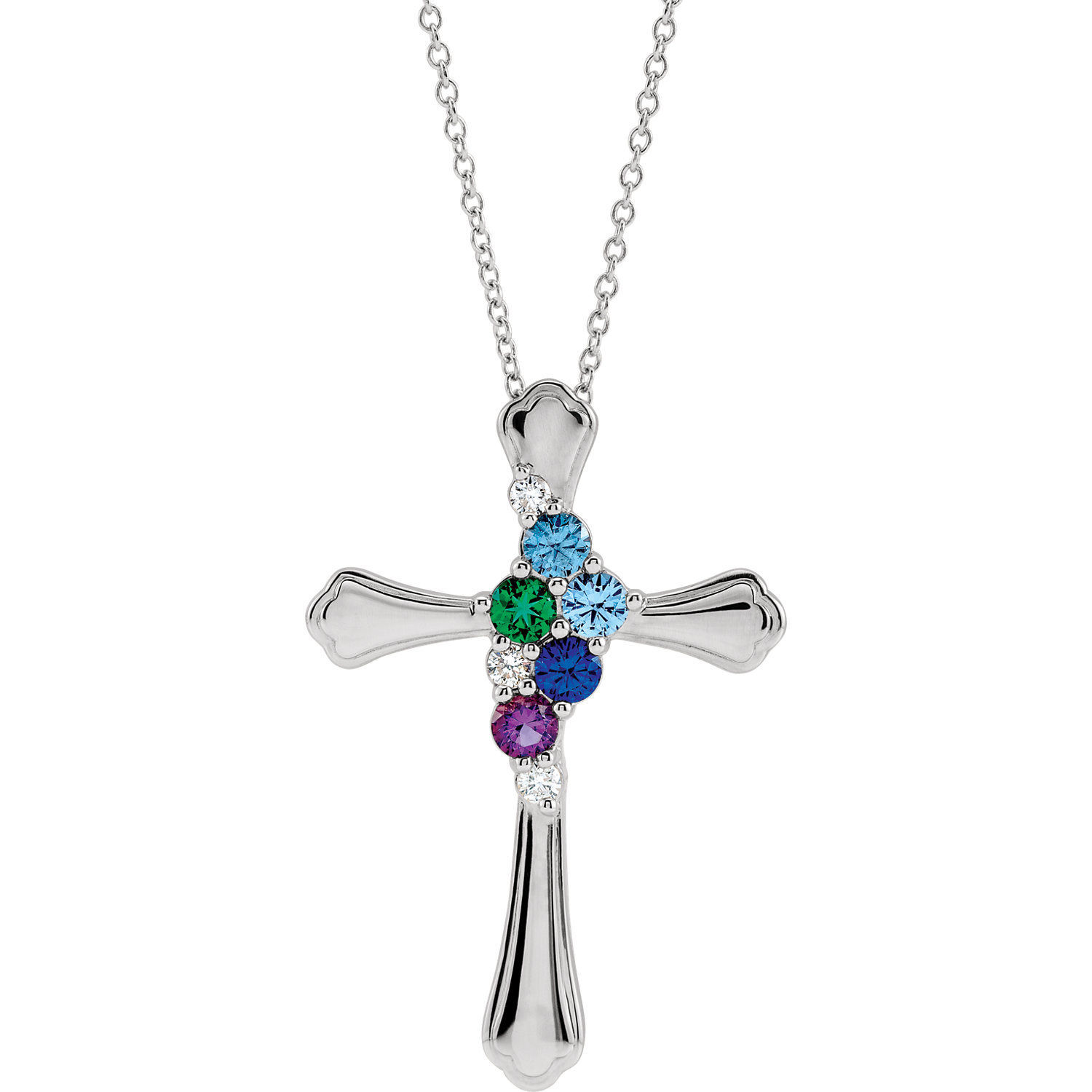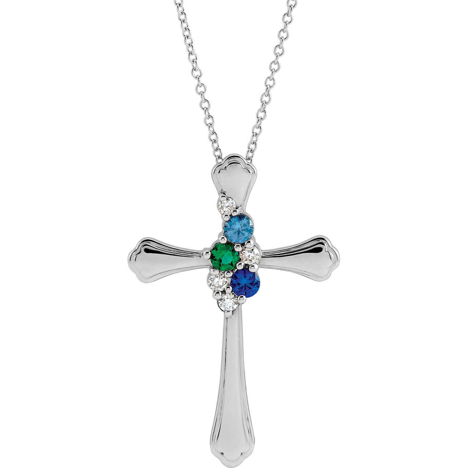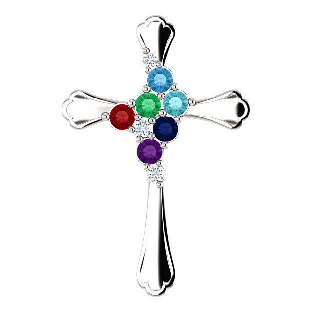 This pendant is available in 14 karat white or yellow gold with genuine or simulated stones.