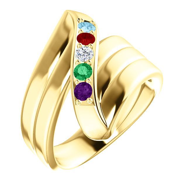 This ring is available in 14 karat rose, yellow or white gold with genuine or simulated stones.