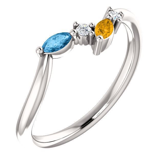This ring is available in 10 or 14 karat, yellow, white or rose gold with genuine or simulated stones.