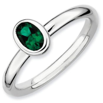 Silver Ring 1 Oval Created Emerald stones