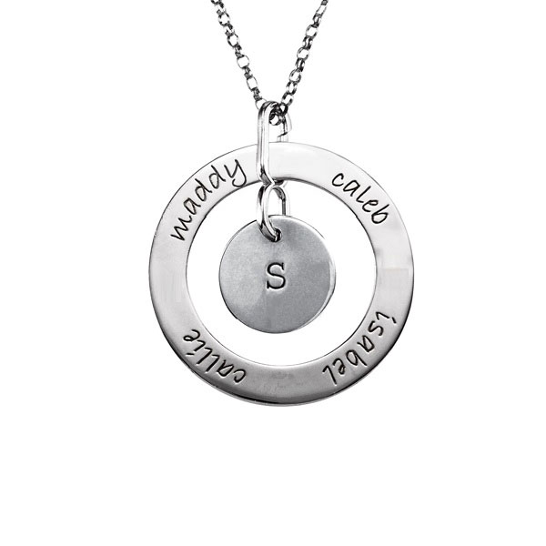 Loop & disc pendants can be engraving both side, no additional charge. You may engrave all spaces or just 1 name/text it is the same price.