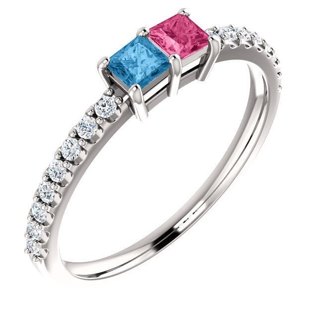 This ring is available in sterling silver with 1-5 genuine or simulated square shaped stones.