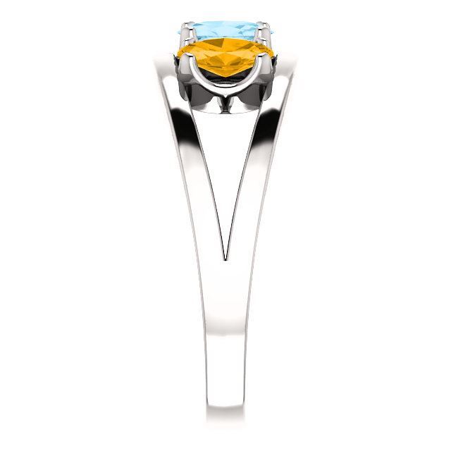 This ring is available in Sterling Silver with genuine or simulated stones. Note that genuine Emerald, Ruby, Sapphire and Alexandrite are offered Chatam lab created stones.
