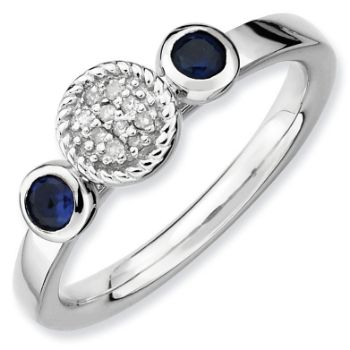 This elegant ring is available in sterling silver with created sapphire stones. Comes in a nice jewelry box.
